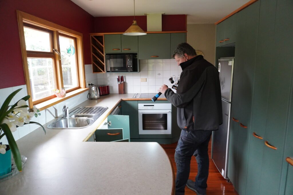 We use moisture meters to test high-risk zones: beneath windows, behind showers, under floor coverings. It’s not guesswork.